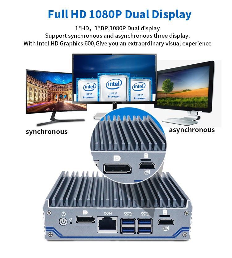Processor | Onboard Intel Celeron J4125(Quad core quad threading,4MB Cache,2.0GHz,pulse frequency 2.7GHz) |